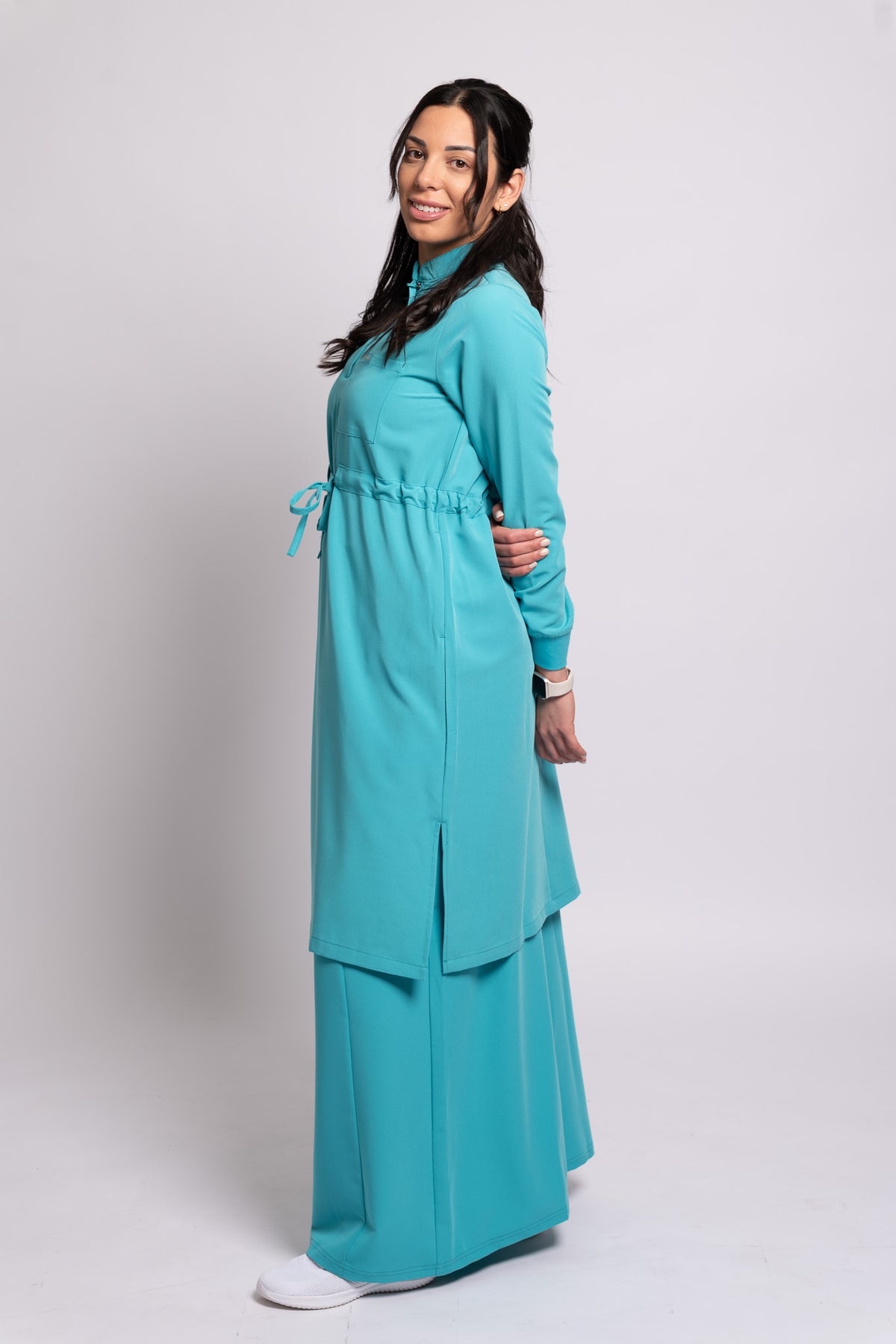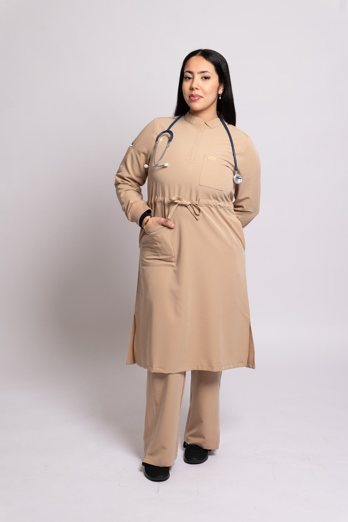 Designed to cascade past the knees no matter your height, Camellia is our longest scrub top to date, created for those who seek uncompromising coverage without sacrificing style.