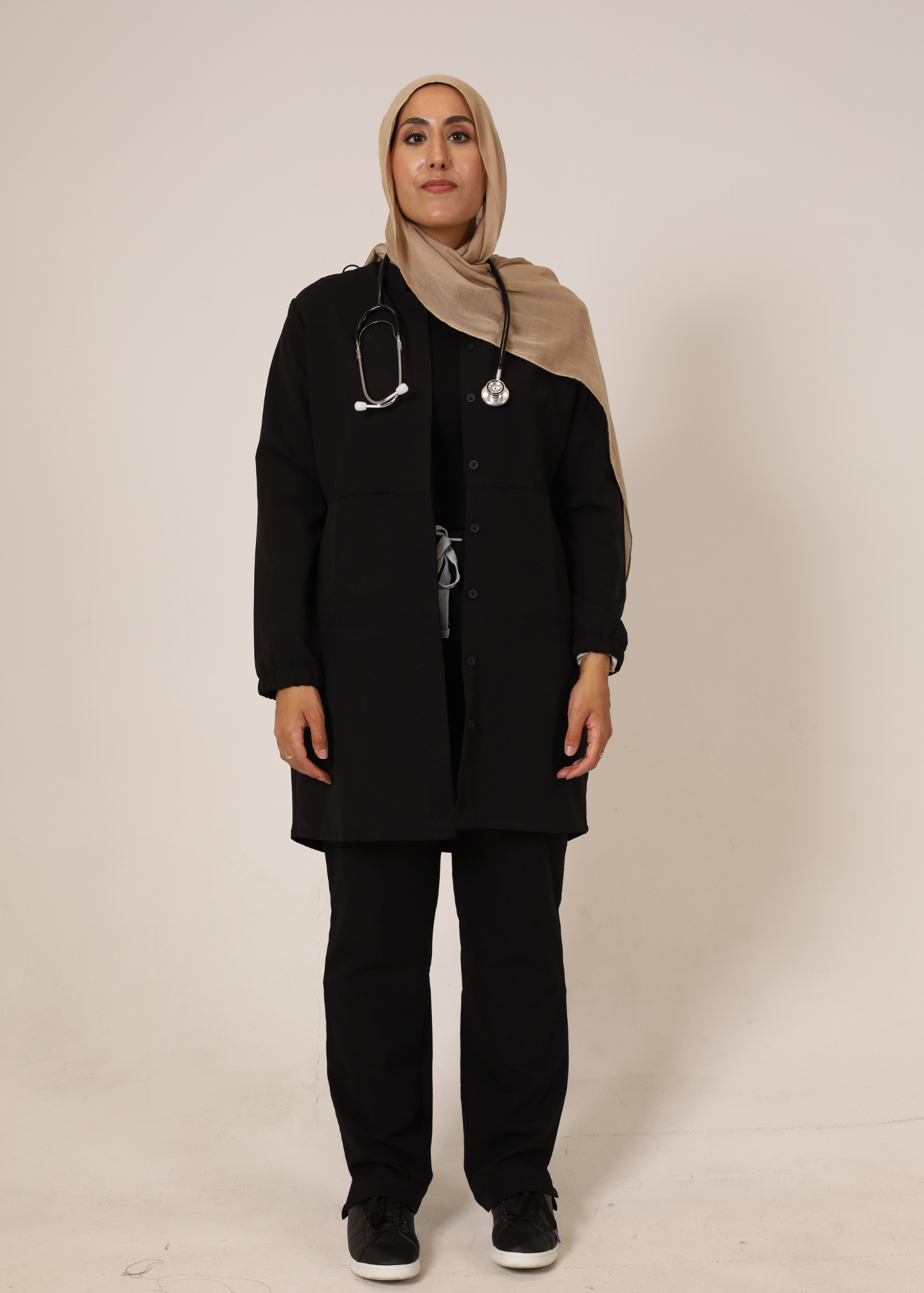 Get two in one with this multifunctional scrub top. To be worn as an elegant top or a very light jacket, Lily is sophisticated, with hidden buttons along the front and three pockets for your convenience – one on each side and one on the left sleeve.